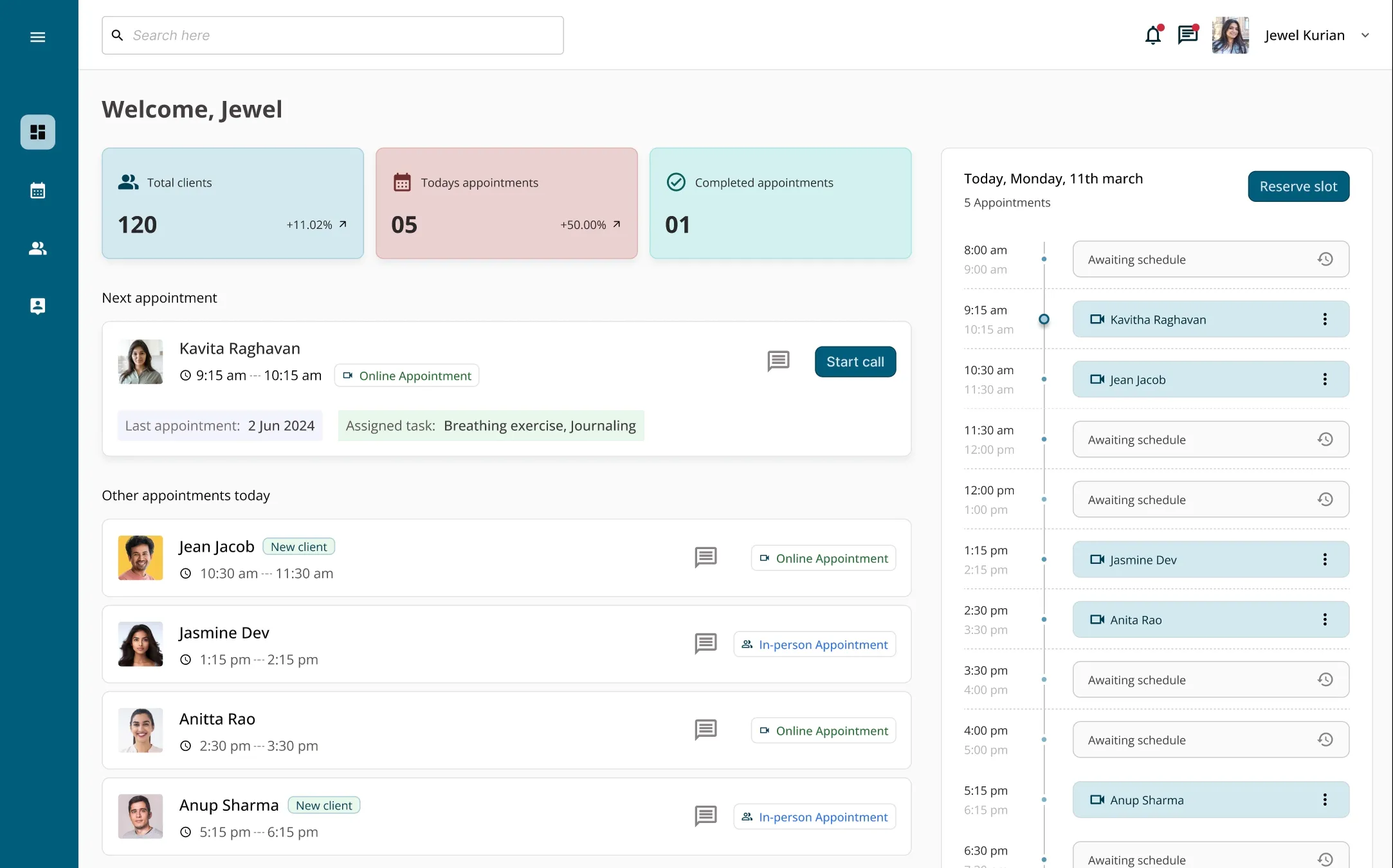 Practitioner profiles are visible to clients only after credential verification.